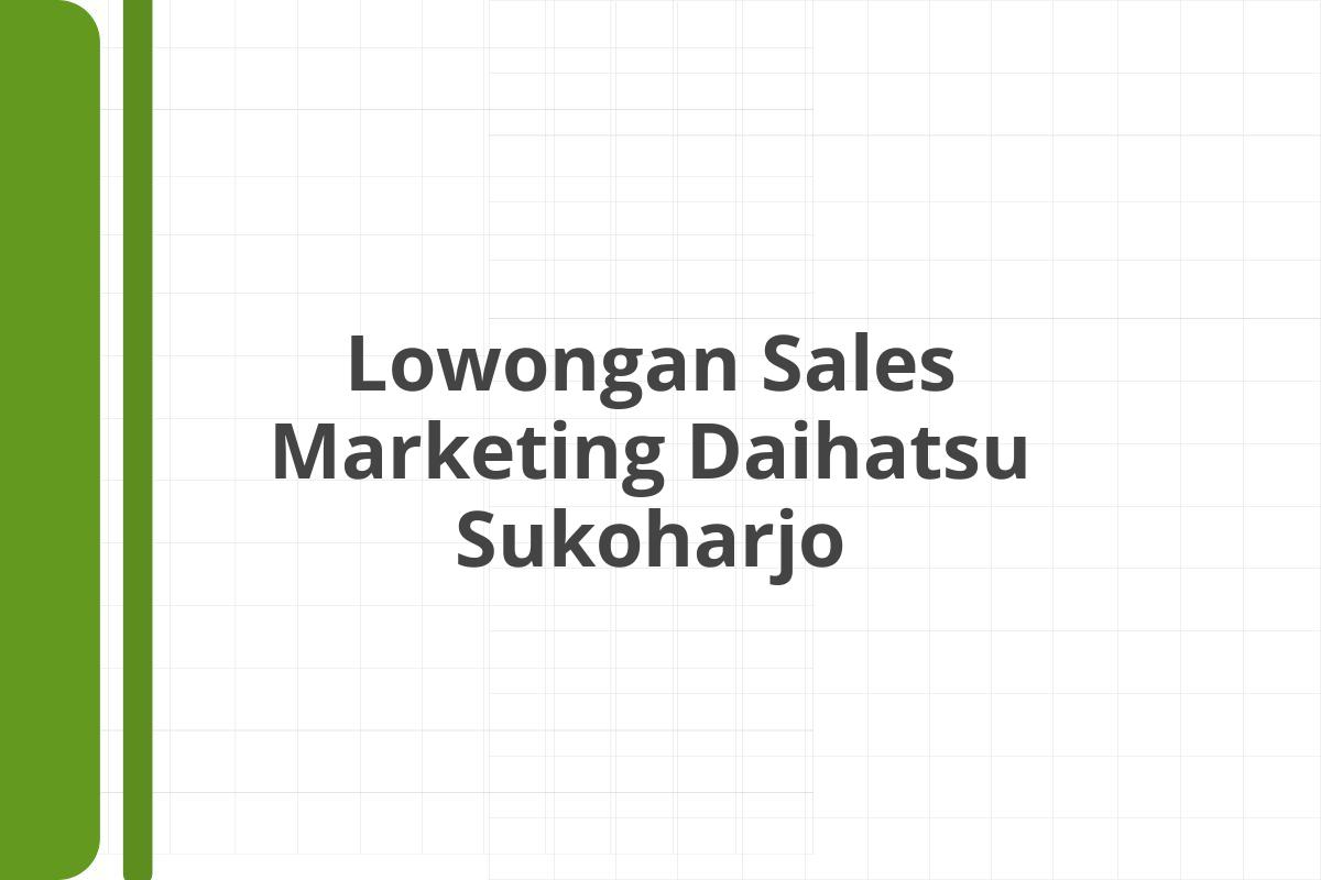 Lowongan Sales Marketing Daihatsu Sukoharjo Tahun 2026